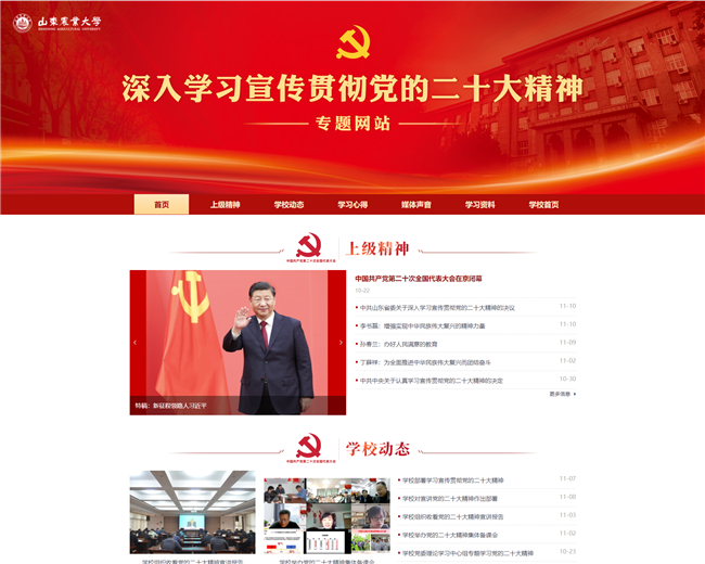 为深入学习宣传贯彻党的二十大精神,引导全校广大党员干部和师生员工全面学习、全面把握、全面落实党的二十大精神,展现学校贯彻落实的具体措施和实际成效,积极营造浓厚学习氛围。学校建设了学习宣传贯彻党的二十大精神专题网站(http://news.sdau.edu.cn/sy_13206/list.htm),并于近日正式开通上线。