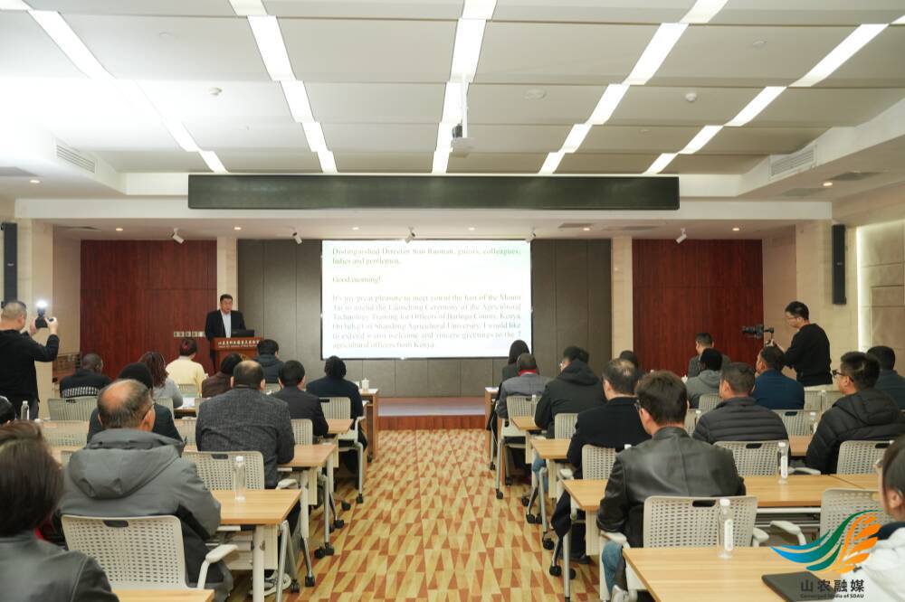 山农融媒11月13日讯 11月11日,肯尼亚巴林戈郡农业技术培训开班仪式在山东农业大学举行。此次培训旨在进一步加强学校与肯尼亚在农业领域的友好合作,通过技术赋能与经验共享,助力肯尼亚提升农业发展水平,践行“一带一路”倡议。山东省委外办非洲处副处长索若楠,山东农业大学副校长高立明,肯尼亚巴林戈郡政府农业厅厅长里斯珀·杰普肯博伊·切普孔加出席活动并讲话。来自肯尼亚巴林戈郡的7名农业专员参加开班仪式。