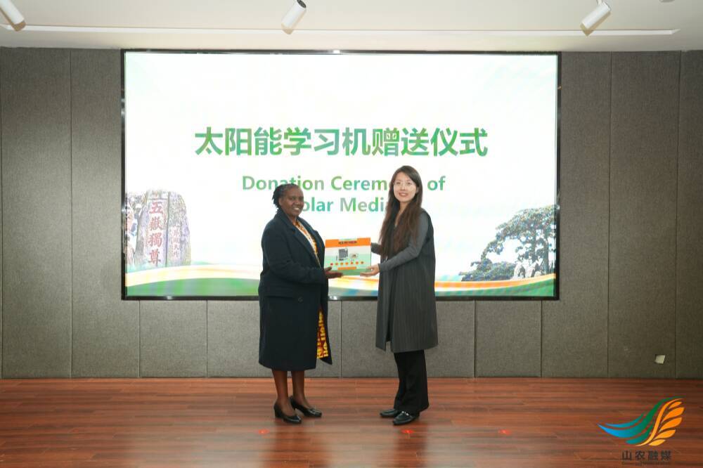 开班仪式上,索若楠代表省委外办非洲处向学员代表赠送学习机。