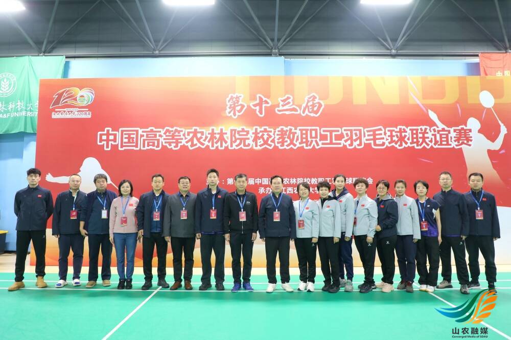 山农融媒11月21日讯 近日,第十三届中国高等农林院校教职工羽毛球联谊赛在江西农业大学举办。我校代表队取得第11名竞赛成绩,并荣获“体育道德风尚奖”。学校党委书记徐剑波出席开幕式并作为队员参赛,副校长林海出席闭幕式并为获奖队员颁奖。