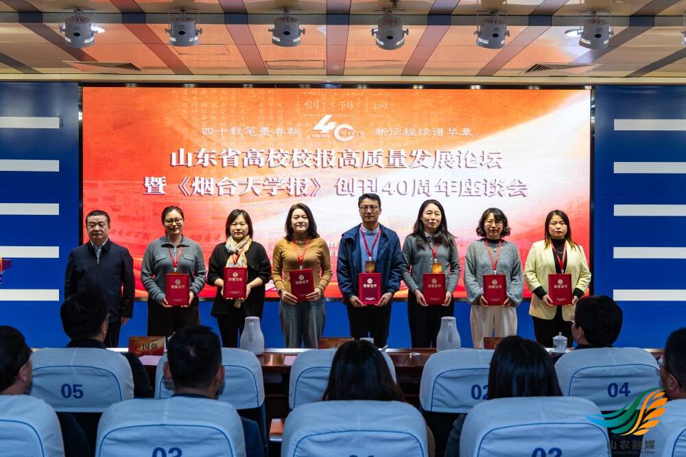 山农融媒11月28日讯 11月24日至26日,山东省高校校报高质量发展论坛暨《烟台大学报》创刊40周年座谈会在烟台大学举行,山东省教育厅总督学王志刚、烟台大学党委书记卢国强等出席活动并讲话。大会对山东新闻奖和山东高校校报优秀新闻奖进行了表彰。我校新闻作品《四十年 三代人》(王静)获2023年度山东新闻奖二等奖,《“幸福美满”红肉苹果1600万转让》(赵伟烨、张伟、张宗营)获2024年度山东新闻奖三等奖。