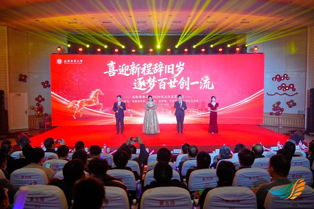 山农融媒12月30日讯 喜迎新程辞旧岁,逐梦百廿创一流。12月30日晚,山东农业大学2026年元旦文艺晚会在岱宗校区文理大楼学术报告厅隆重举行。全体在家校领导、党委常委与师生代表欢聚一堂,共同观看演出。