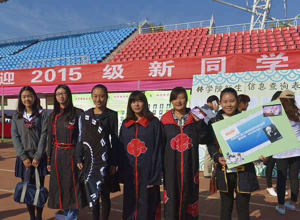 林学院动漫社团的志愿者欢迎新生的方式很“专业”