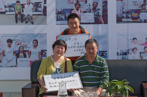 徐剑波勉励林学院国慧伶同学(入学成绩全校最高分)勤奋学习取得更大成绩