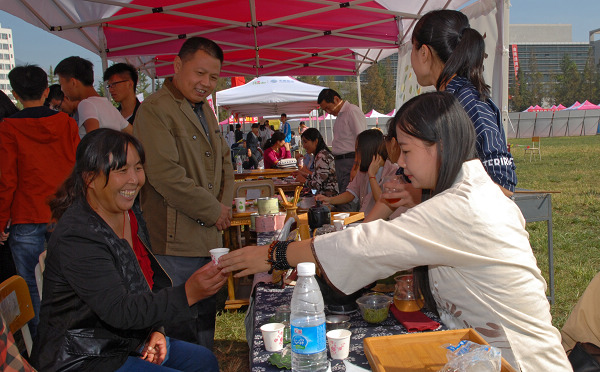 园艺学院茶学专业学生用自己炒制的茶叶接待新生家长