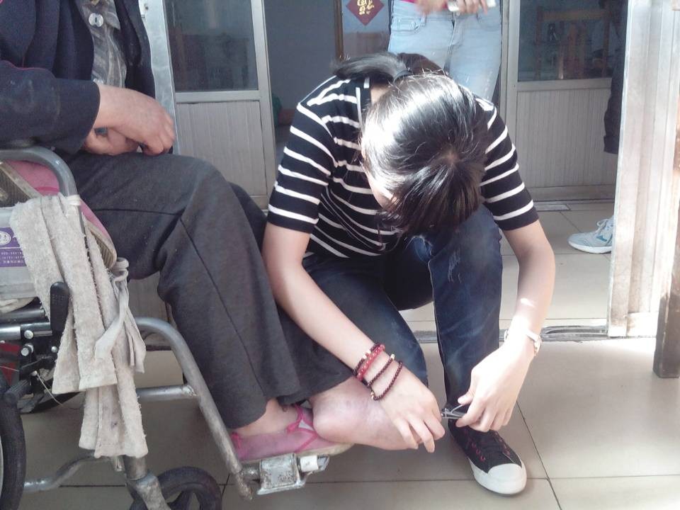 志愿者们在院长的带领下,来到住宿楼,洁白的墙壁,整齐的摆设,透露出老人们良好的精神面貌。走进敬老院,同学们干劲十足,各有分工。有的同学为老人捶肩揉腿、清洁指甲;有同学为老人讲笑话,讲养生小知识,不少老人热情讲起了自己的人生经验,同学们在快乐的交流中给老人们带去欢笑和快乐;其余的同学则帮助老人整理内务,打扫卫生,使老人变得轻松,每个人的脸上都洋溢着幸福的笑容,整个敬老院萦绕着爱的暖流,场面温馨感人!虽然老人在谈及自己的家庭及病情时脸上显出无限伤感,但同学们随即表演精心准备的节目,使现场气氛明显愉悦起来。活动最后,志愿者们为老人留下同学们精心制作的小礼物,并表达了他们对老人们健康快乐长寿的无限祝愿。