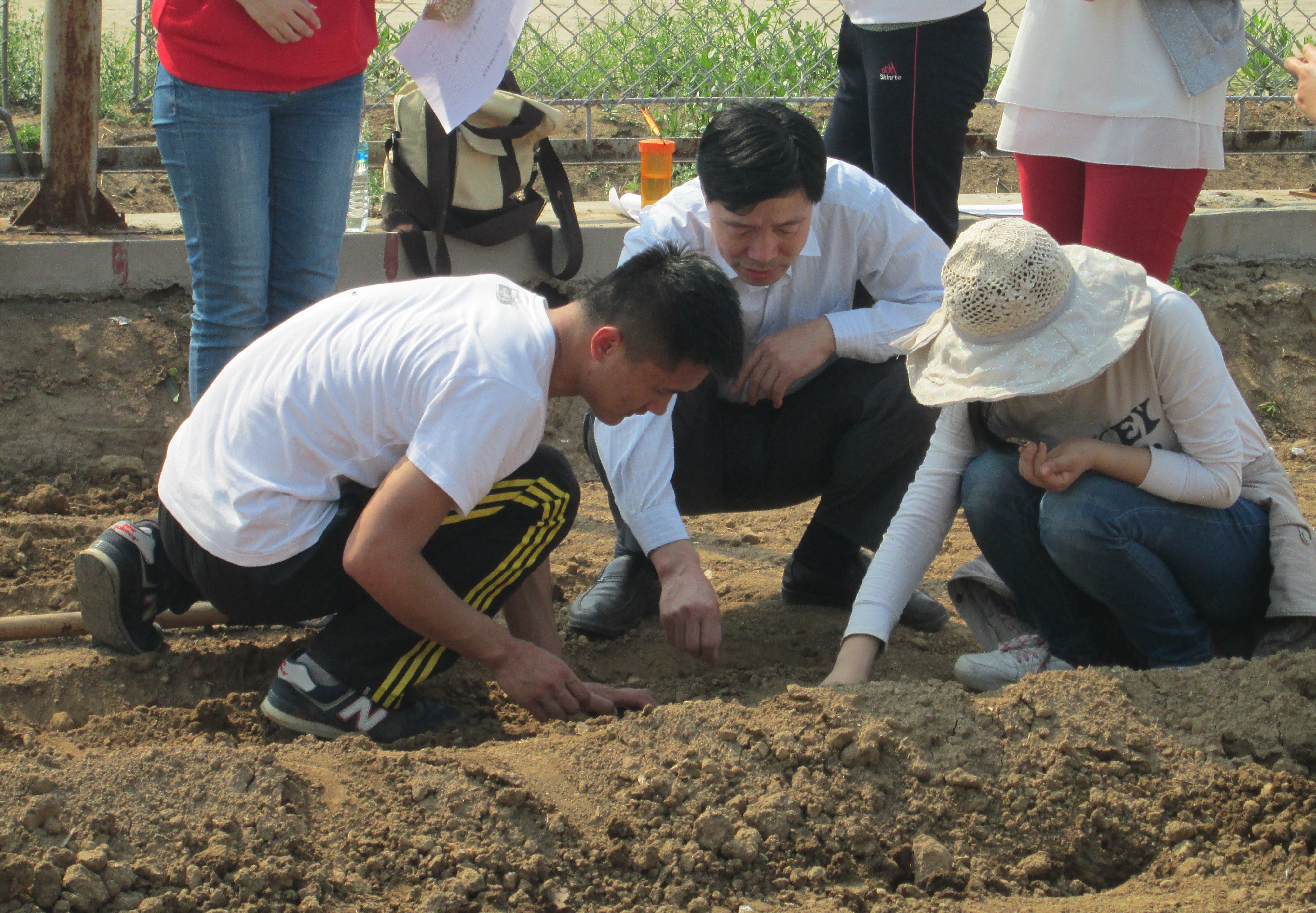 整个栽种过程中,郭老师在旁耐心细致给予指导、提出建议,当面对关键的农事活动亲身示范,农学院党委副书记王淮钟到基地与同学们亲切交流、共同实践,引领学子勇于实践,敢于探索,为接下来的科研的种植方面打下坚实的基础。
