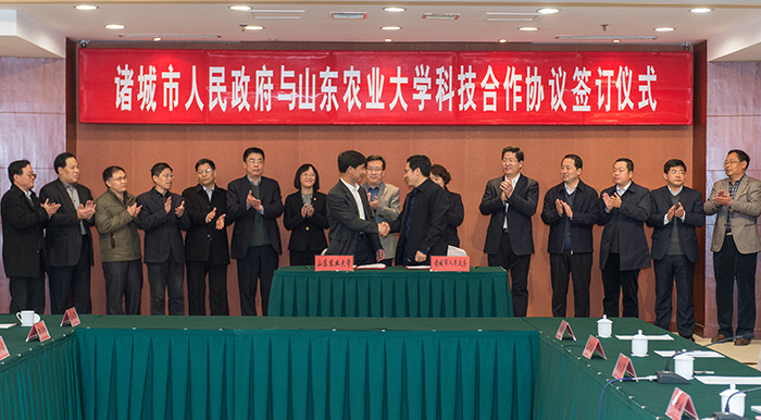 3月15日,我校与诸城市人民政府签订全面科技合作协议。学校将进一步发挥人才、技术优势,加快科技成果转化,为诸城农业供给侧结构改革、增创农业发展新优势提供支持。