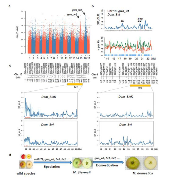 日前,山东农业大学陈学森教授带领的研究团队与美国康奈尔大学费章君密切合作,在苹果种质资源研究方面取得重大突破,在分子水平上揭示了苹果起源、演化和驯化的规律,并证明世界栽培苹果起源于我国新疆。8月15日,国际著名学术期刊《自然通讯》(Nature Communications)以《基因组重测序揭示苹果起源演化历史及果实大小的二步驯化模型》为题发表了他们的研究成果。该成果对推动苹果种质资源保护与利用及遗传育种提供了重要的理论与技术支撑,这也标志着我国在该领域的研究居国际领先水平。
