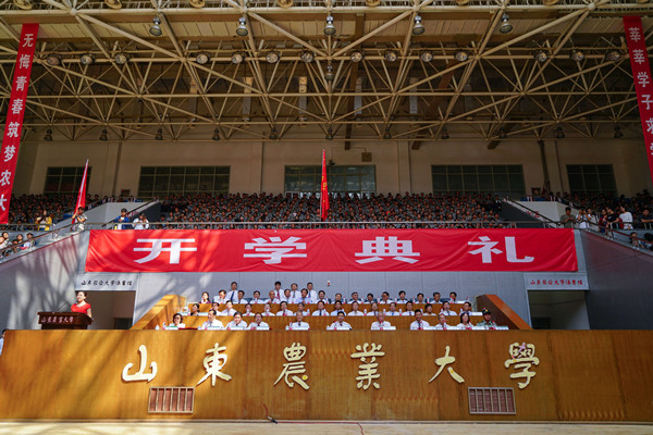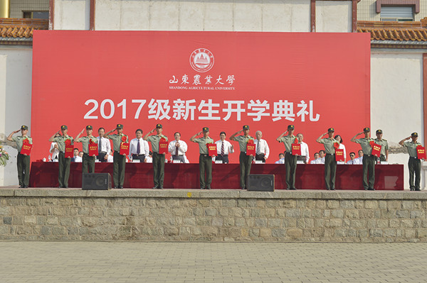 9月15日,2017级新生开学典礼在东校区、南校区分别举行,学校领导张宪省、朱莉、嵇景涛、王振林、吴衍涛、张然、司金贵,中国工程院院士束怀瑞、于振文出席典礼。各学院党委书记、院长,各部门主要负责人,教师代表、家长代表、高年级学生代表、军训参训官兵与2017级全体新生参加典礼。典礼由学校党委副书记朱莉主持。