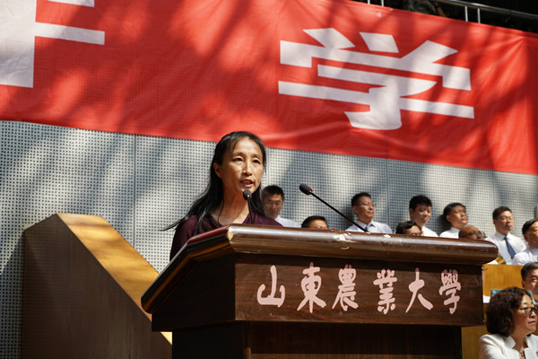 泰山学者攀登计划专家李平华教授代表教师发言,承诺秉承爱岗敬业的信念,真诚地关爱每一位同学,做同学们的良师益友;继承发扬“登高必自”校训,努力提高自己的专业水平和教学水平,做好“传道授业解惑”的基本功课;勇于担当“师者”的重要责任和光荣使命,矢志培养又红又专的社会主义建设者和接班人。