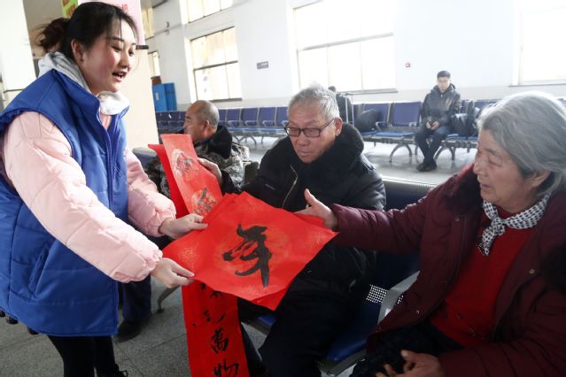 仪式上,由我校青年志愿者、部分泰山站铁路职工和车站派出所民警共同组建的了春运志愿服务队。队员们共同宣誓,并在印有服务承诺的条幅上签字。仪式结束后,山东农大26位志愿者随即以饱满的热情奔赴志愿服务岗位,他们不但为旅客出行服务,还特意为旅客送去了春联。