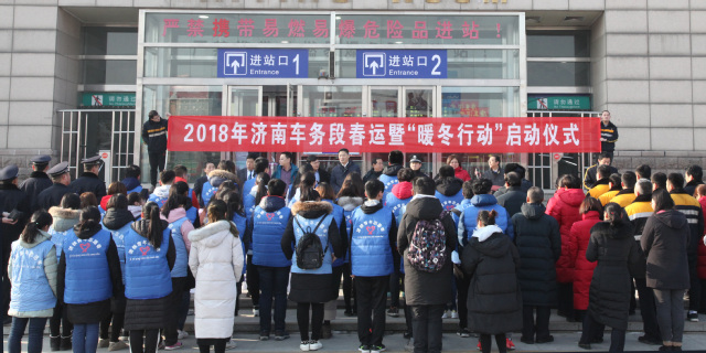 2月1日,2018年济南车务段春运暨“暖冬行动”启动仪式在泰山火车站举行。济南铁路局济南车务段、泰山站和我校团委相关负责人出席活动。