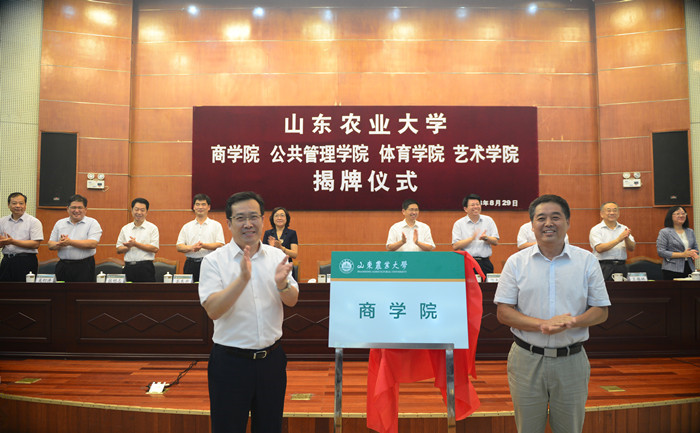 8月29日,学校举行商学院、公共管理学院、体育学院、艺术学院成立大会,全体校领导出席揭牌仪式。党委书记徐剑波为新组建学院揭牌。