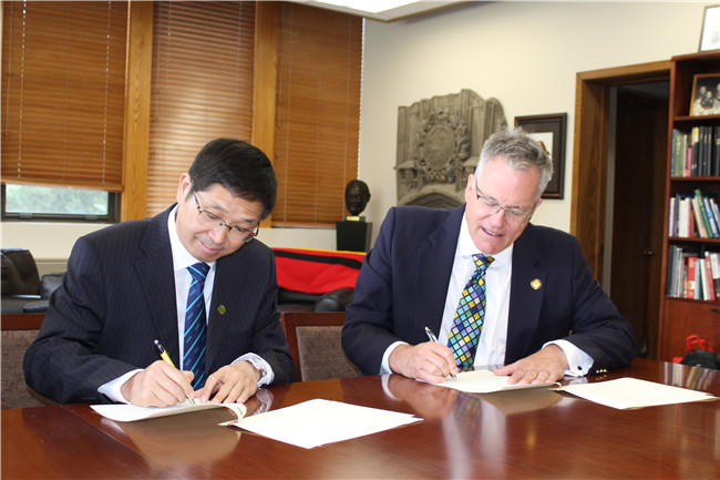 张宪省与爱达荷大学校长查克•斯塔本教授签署校际合作谅解备忘录