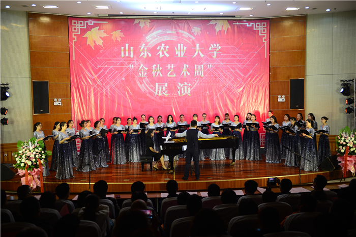 20日晚上的“我心属你”合唱音乐会,是“岱下青年合唱团”的主场,黄鸽老师的指挥专场,吴晓玉老师的钢琴伴奏专场,更是农大合唱的盛宴。在前一天的音乐会上,吴晓玉老师就近乎为所有节目做钢琴伴奏,她的每一次上台,观众都会送上心动的笑容和轻轻的掌声。《我心属你》《小山重叠金明灭》《对面的女孩看过来》《城南送别》 《UbiCaritas》《蒲公英》《峥嵘往昔》……传统经典或时尚流行的曲目,流传或自创的曲词,首首精彩,引人入胜。由刘群英作词、王永振作曲的原创艺术歌曲《赞美你啊,山东农大》更是引起场内观众的深深共鸣。