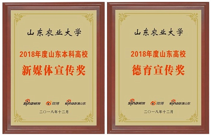 近日,新浪网2018年度山东教育新媒体宣传奖项榜单发布,继2017年斩获大奖之后,山东农业大学再次荣获“2018年度山东本科高校新媒体宣传奖”“2018年度山东高校德育宣传奖”两项殊荣。