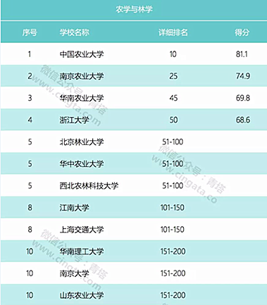 另据统计,在中国大陆农林院校中,我校农林学科排名中国农业大学、南京农业大学、华南农业大学、北京林业大学、华中农业大学、西北农林科技大学之后,列第7位。