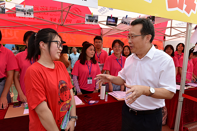 党委书记徐剑波、校长张宪省走进迎新现场,与新生和家长亲切交流,了解他们的需求和想法,表示学校会为学生成长成才搭建广阔平台,勉励新生们尽快适应新的学习环境和生活节奏,在大学里继续加倍努力,追寻梦想。