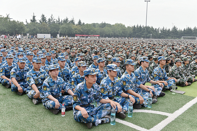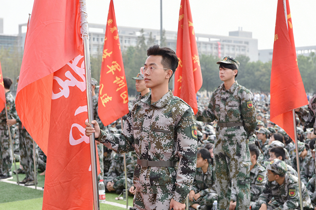 9月4日,学校2019级本科新生军训在南校区体育场开营,党委副书记杨天梅、71770部队教导员孙腾飞出席开营式并讲话。有关部门及学院负责人和7000余名新生一起,身着统一服装参加开营仪式。
