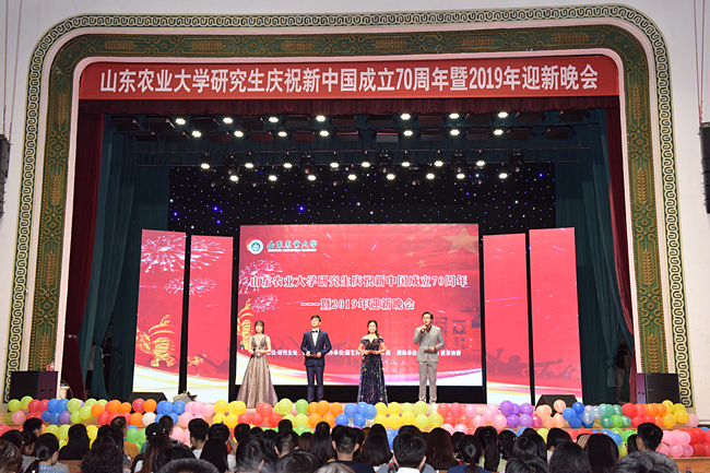 9月27日晚,北校区西礼堂座无虚席,激情四溢,山东农业大学研究生庆祝新中国成立70周年暨2019年迎新晚会在此举行。学校领导张宪省、朱莉、杨天梅、王振林、张然、司金贵,各单位负责同志及千余名2019级研究生新同学共同观看了晚会。