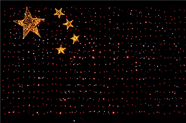 晚会现场的广大青年学子还别出心裁地用灯光方阵组成国旗、“中国”和“70”等图案,用特别的方式表达对祖国的热爱与祝福。