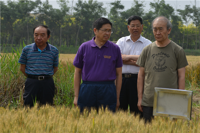 来校期间,刘旭院士参观了作物生物学国家重点实验室,实地了解学校基础科研条件。在南校区小麦实验基地,农学院院长孔令让向刘旭院士介绍诸多品种的特点和背后的故事。正值小麦即将收获时节,强筋、中强筋、高产、抗旱、抗病、抗倒伏等多类小麦品种特色鲜明,金黄、硕大的麦穗随风微摇,透着浓浓的丰收气息。
