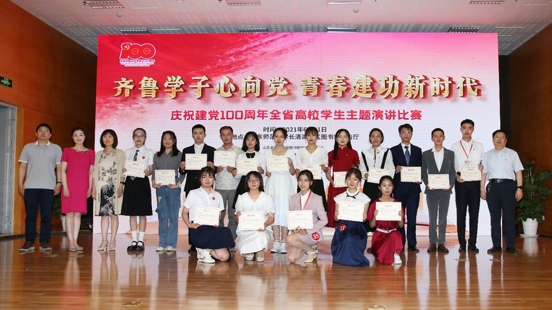 6月11日,“齐鲁学子心向党 青春建功新时代” 庆祝建党100周年全省高校学生主题演讲比赛在山东师范大学长清湖校区图书馆举行,我校在比赛中获得多个奖项。