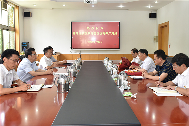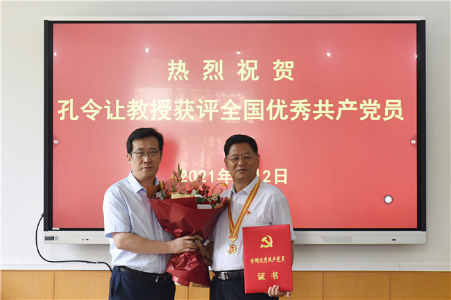 徐剑波高兴地说,在中国共产党成立百年的重要历史时刻,孔令让同志当选全国优秀共产党员,既是个人无上荣誉,更是山东农业大学的骄傲。他找到攻克小麦“癌症”金钥匙的努力和成就,生动彰显了新时代共产党人的先锋形象,是全国共产党员的优秀代表,更是山东农业大学师生员工身边的榜样和楷模。