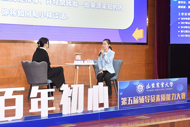 决赛围绕党史学习教育、疫情防控要求、课堂手机入袋、网络文明素养等大学生思想政治教育和日常管理中的重点难点精心选题,采取案例分析、谈心谈话、宣讲对谈等方式进行。20位选手随机抽取题目,现场进行阐述交流,展现了良好的职业素养和应变能力。经过激烈角逐,程璐、刘天琳等2名选手获一等奖,尹昌美、潘广臣、韩艳等3名选手获二等奖,郭海涵、李妥、赵伟烨、李昕冉、赵鸿等5名选手获三等奖。