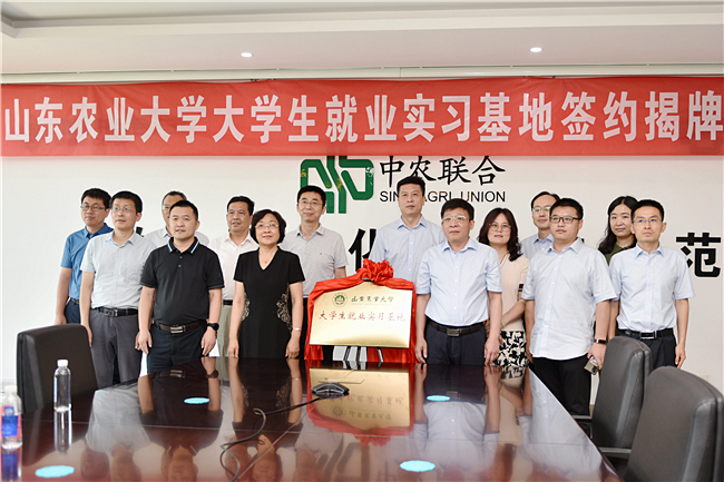 6月2日,山东农业大学大学生就业实习基地签约揭牌仪式在山东中农联合生物科技股份有限公司举行。山东农业大学党委副书记朱莉、山东中农联合生物科技股份有限公司副总经理齐来成出席仪式,并共同为基地揭牌。
