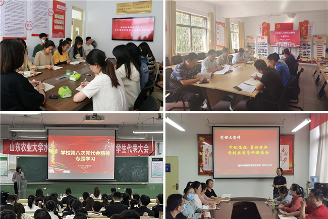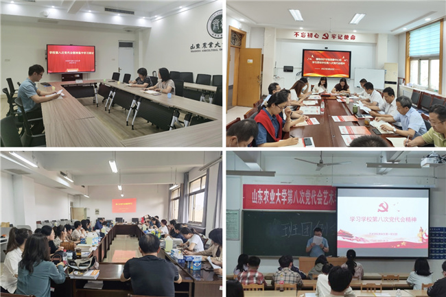 中国共产党山东农业大学第八次代表大会全面回顾总结了学校第七次党代会以来的主要成绩和宝贵经验,确定了新阶段学校发展的总体目标以及今后五年“一四六八五”的工作思路和主要任务。大会闭幕以来,各基层党组织按照学校党委部署,通过集体学习、专题党课、主题党日、座谈交流、实践研学等形式,迅速掀起学习贯彻第八次党代会精神的热潮。