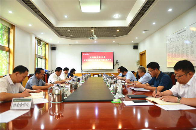 6月28日,学校党委理论学习中心组围绕主题教育第四个专题“正确理解和大力推进中国式现代化”开展学习研讨,并将习近平总书记在中央政治局第五次集体学习、文化传承发展座谈会上的重要讲话精神纳入学习交流内容。党委书记徐剑波主持会议,强调要深刻把握中国式现代化的中国特色、本质要求、重大原则,正确理解其时代背景、时代特征、时代要求,要以总书记重要讲话精神为指引,深刻认识建设教育强国、文化强国的重大战略意义,紧密结合主题教育要求,持续推动主题教育走深走实,切实担负起服务高质量发展和支撑中国式现代化建设的时代重任。