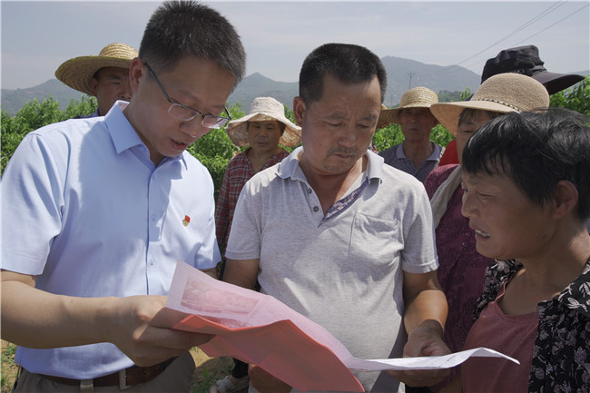 6月21日,骄阳似火。临沂市蒙阴县垛庄镇桃园里,山东农业大学植物保护学院组织相关专家,给当地果农上了一堂“紧急的”桃园病虫害管理现场技术指导课,手把手交给果农病虫害防治方法。