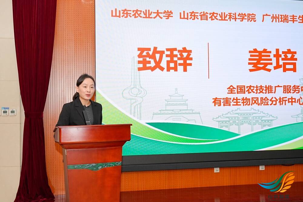 姜培致辞时表示,农业绿色高质量发展是当今时代主题,推动农业病虫害精准监测与高效防控,筑牢国家生物安全屏障,需要协同作战。此次合作发挥了产学研协同创新的优势,期待三方紧密合作,聚焦智慧农业、快速检测、绿色低碳等关键技术需求,研发出更多先进适用的技术和产品,各级农业推广部门也将加大宣传推广力度,让新技术、新产品尽快地走进田间地头,惠及广大种植户。