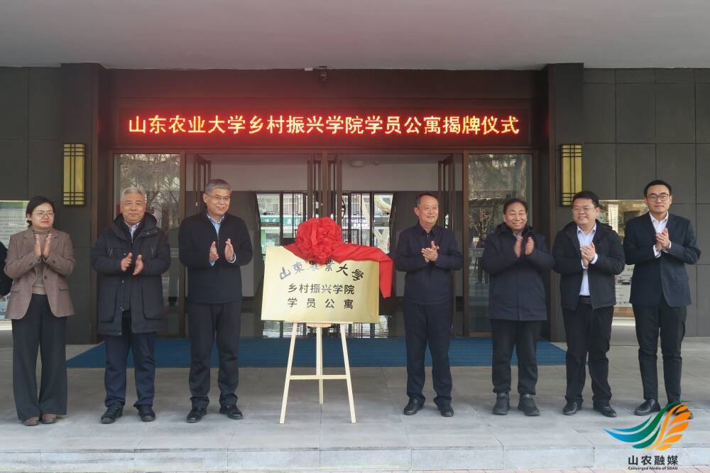 山农融媒1月26日讯 1月24日,学校与泰安市文化旅游发展集团有限公司举行乡村振兴学院学员公寓共建合作签约仪式。学校党委常委、副校长周玉玺,泰安市文化旅游发展集团党委副书记、总经理苗伟共同为培训学员公寓揭牌。