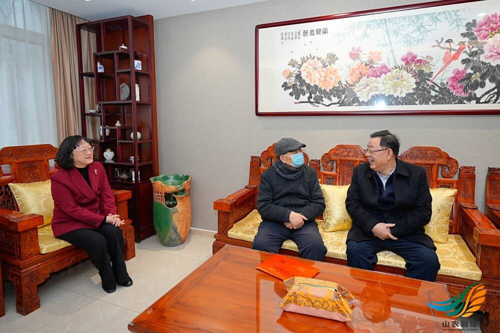 山农融媒2月7日讯 2月6日,新春佳节即将到来之际,泰安市委书记杨洪涛看望慰问专家人才中国工程院院士、山东农业大学农学院教授于振文和中国科学院院士、山东农业大学植物保护学院教授印象初,并送上新年祝福。学校党委书记张然一同看望,泰安市委常委、秘书长张颖陪同活动。