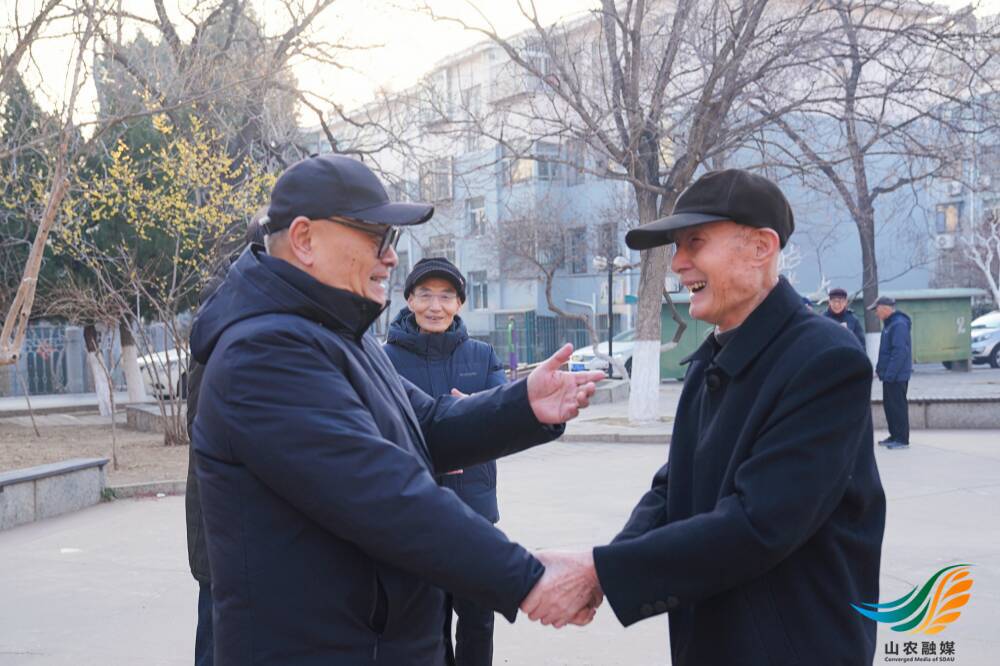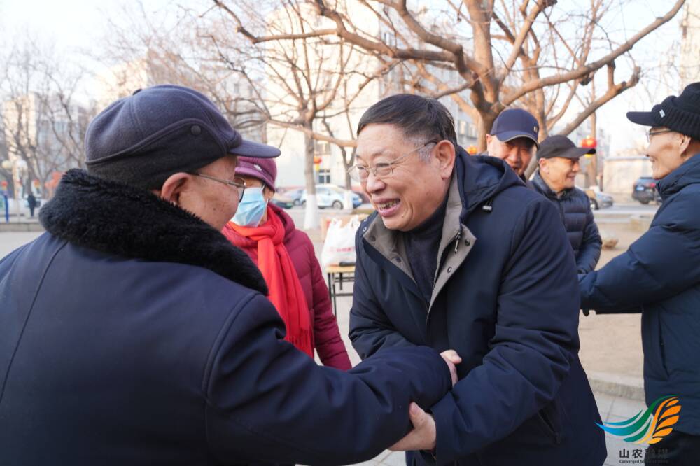 山农融媒2月17日讯 金马迎春启新程,登高奋进向一流。2月17日,农历大年初一,学校岱宗校区家属院暖意融融、欢声阵阵,学校党委书记张然,党委副书记嵇景涛与离退休老同志、老专家欢聚一堂,互致问候,同庆新春佳节。